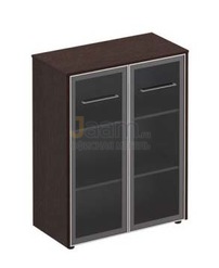 Офисный шкаф для документов средний №13682 - столешница: дсп 25 мм, кромка: пвх, покрытие: ламинат, стекло: матовое.